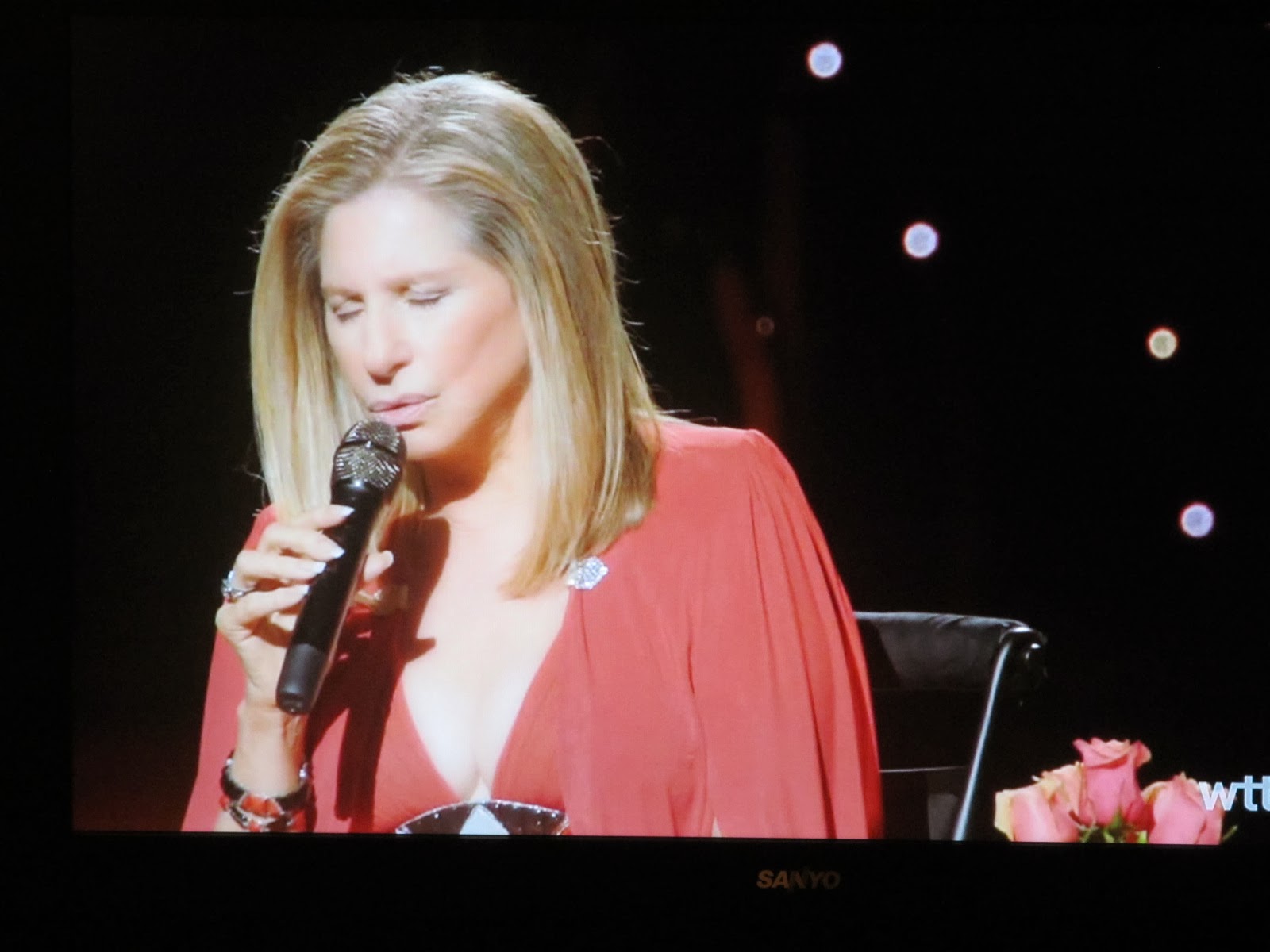 . 今天的音樂饗宴是 Barbra Streisand concert - Back to Brooklyn, 機會難得, 趕緊拿著小相機對著螢幕拍下巨星風采.
